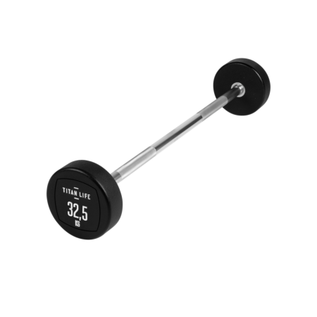 TITAN LIFE PRO Barbell 32,5 kg er en vægtstang med fast vægt, som både kan bruges til at træne biceps og triceps. Vægtenheden er svejset fast til vægtstangen og beklædt med polyurethan. Den er egnet til træningscenteret, foreningsfitness mm. Fordelen med en vægtstang med fast vægt er, at der ikke skal bruges tid på udskiftning af vægtskiver, samt at vægtstørrelser har et spring på 5 kg. fra 10 – 45 kg.