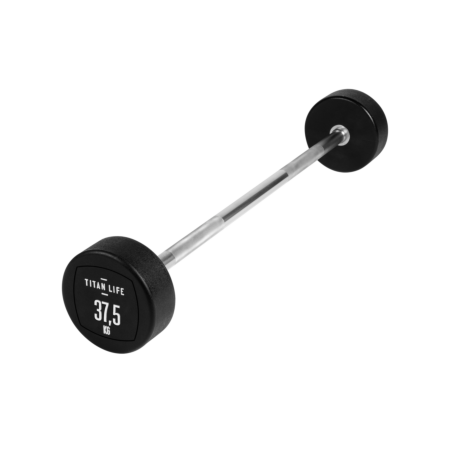 TITAN LIFE PRO Barbell 37,5 kg er en vægtstang med fast vægt, som både kan bruges til at træne biceps og triceps. Vægtenheden er svejset fast til vægtstangen og beklædt med polyurethan. Den er egnet til træningscenteret, foreningsfitness mm. Fordelen med en vægtstang med fast vægt er, at der ikke skal bruges tid på udskiftning af vægtskiver, samt at vægtstørrelser har et spring på 5 kg. fra 10 – 45 kg.